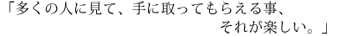 私がこの仕事をしていて感じるのは、「これ良いよね」って人から言われて初めて幸せだなと思える人しか、やって行けない仕事だという事です。仕事は自分の満足だけを追求出来る場ではないですが、商品として沢山売れるから初めて出来る事があると思います。それだけ多くの人に見て、手に取ってもらえる事、それが楽しいですね。