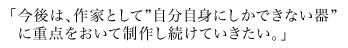食器の制作の方は、量産のものでも良い製品が多く出回っていますが、そういった中でも作家として『自分にしかできない器』ということに重点を置いて制作し続けていきたいと思っています。