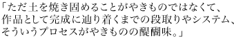 □最後に、これからやきものの道を志す人達に伝えたい事はありますか?