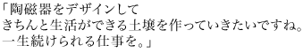 陶磁器をデザインしてきちんと生活ができる土壌を作っていきたいですね。一生続けられる仕事を。