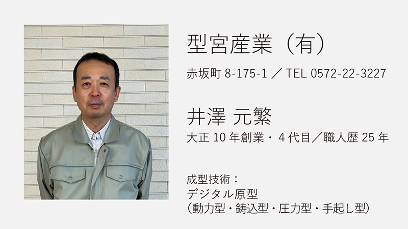 岐阜県石膏型工業協同組合は、主として陶磁器用石膏型を成型する業界で組織されています。昭和31年、組合員数60名で発足設立され、美濃焼陶磁器業界と共に発展してきました。今回の研究会に参加されている、岐阜県石膏型工業協同組合の多治見支部5社と滝呂支部4社、合わせて9社の組合員有志をご紹介します。