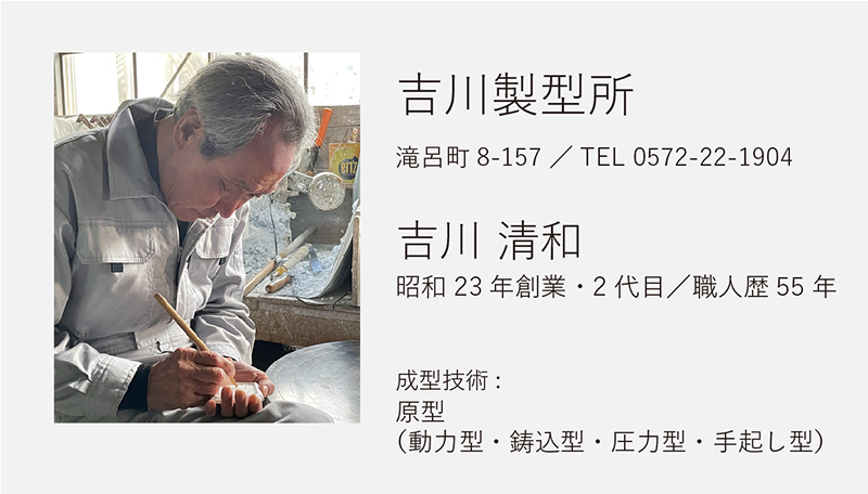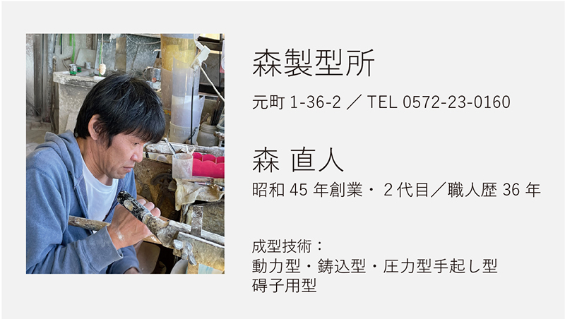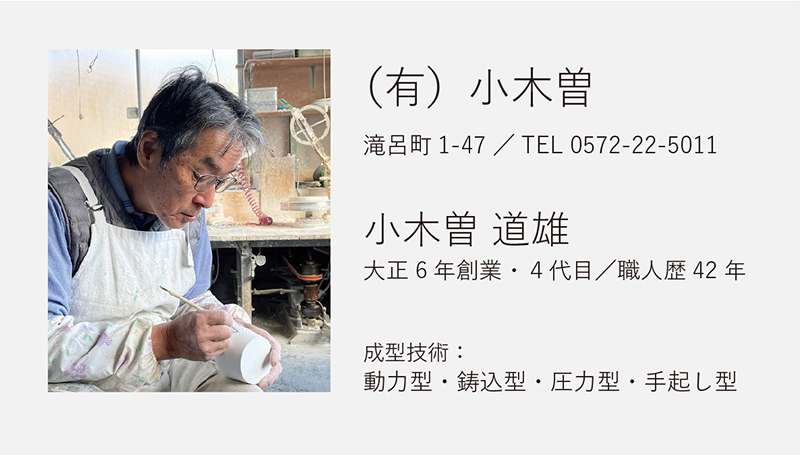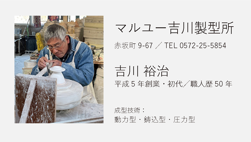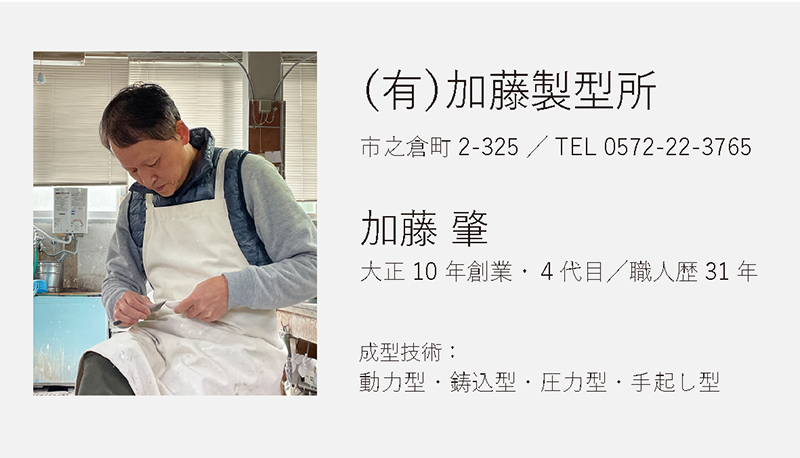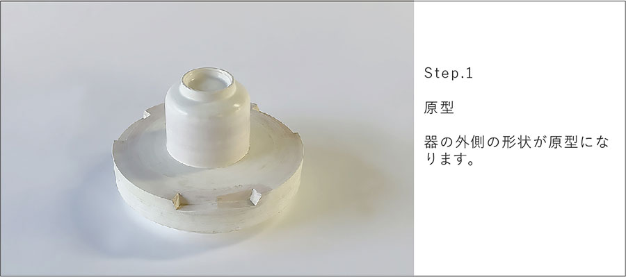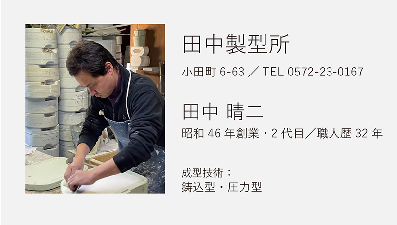 やきものは、土を焼いて形にします。土の乾燥収縮、焼成による収縮や形状変形など、様々な現象がやきものの製造工程で起こります。美濃焼製造の根幹を支える既存の石膏成型技術を持つ原型師は、求める形状が焼成後に正しくとれるように、原型の段階で、形状を拡大したり、焼成による変形を防ぐための成型を施します。この技術を習得するには、長年の経験と勘が必要です。実際にどのような技法や型の種類があるのか説明をします。