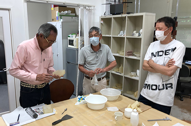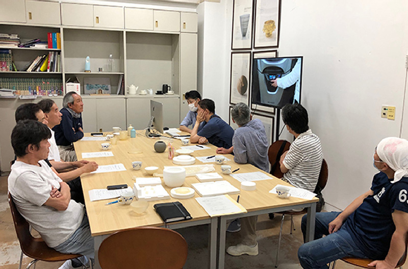 多治見市陶磁器意匠研究所は、2018年10月に3Dプリンターを導入し、形状サンプル見本、樹脂原型として市内企業様を中心に活用いただいています。令和2年度から、陶磁器関連企業の皆様に更なる有効活用をしていただくため、当研究所デザイン室と岐阜県石膏型組合多治見・滝呂支部組合員有志9社との連携による「3Dプリンター・3DCAD活用造形技術向上研究会」を6月から開始しました。令和3年度には、3Dプリンターに加えて3Dスキャナーおよび3Dデータ変換ソフトを新たに導入し、「3Dモデリング機器活用造形技術向上研究会」と改名し研究会を実施しています。 研究会では、美濃焼製造の根幹を支える既存の石膏成型技術に加え、樹脂型と3Dモデリング技術の新たな活用方法について、現場に一番近い原型師の皆さんと現実的な観点から模索しています。