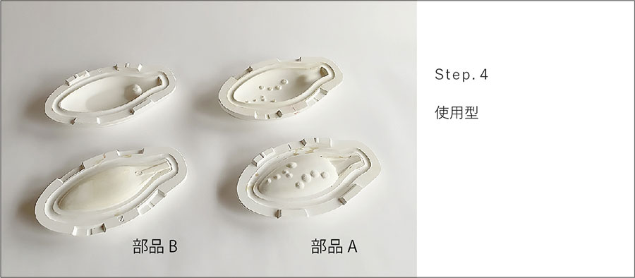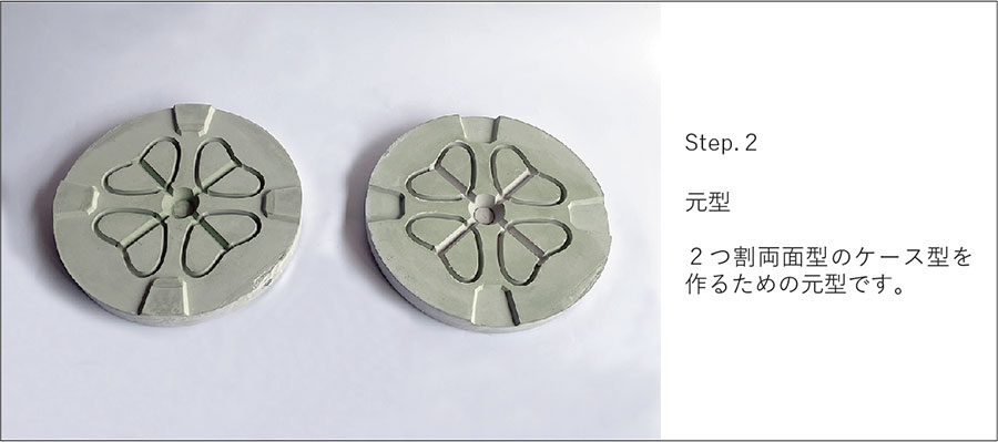 上下2つに分割でき、型の両面に素地ができる。